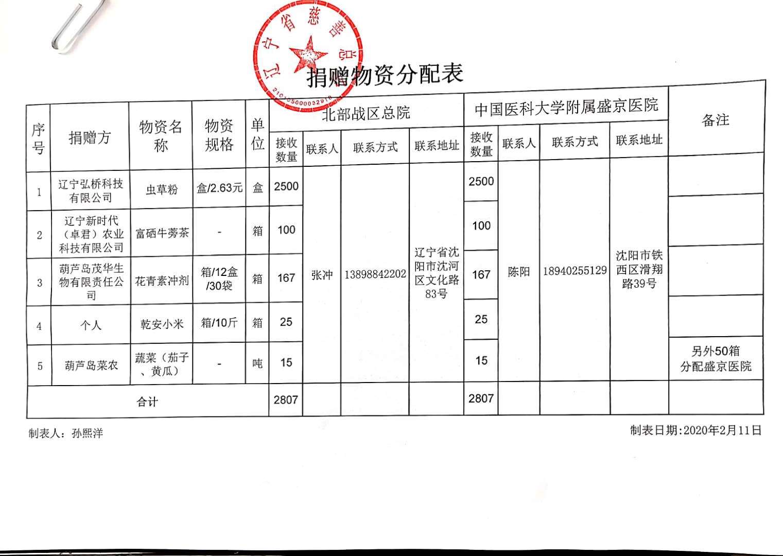 葫芦岛茂华生物有限责任公司,于2020年2月20日,分别向辽宁中国医科大学附属盛京医院和北部战区总院工作在防疫一线的医护人员,捐赠花青素饮品,致敬抗疫英雄!